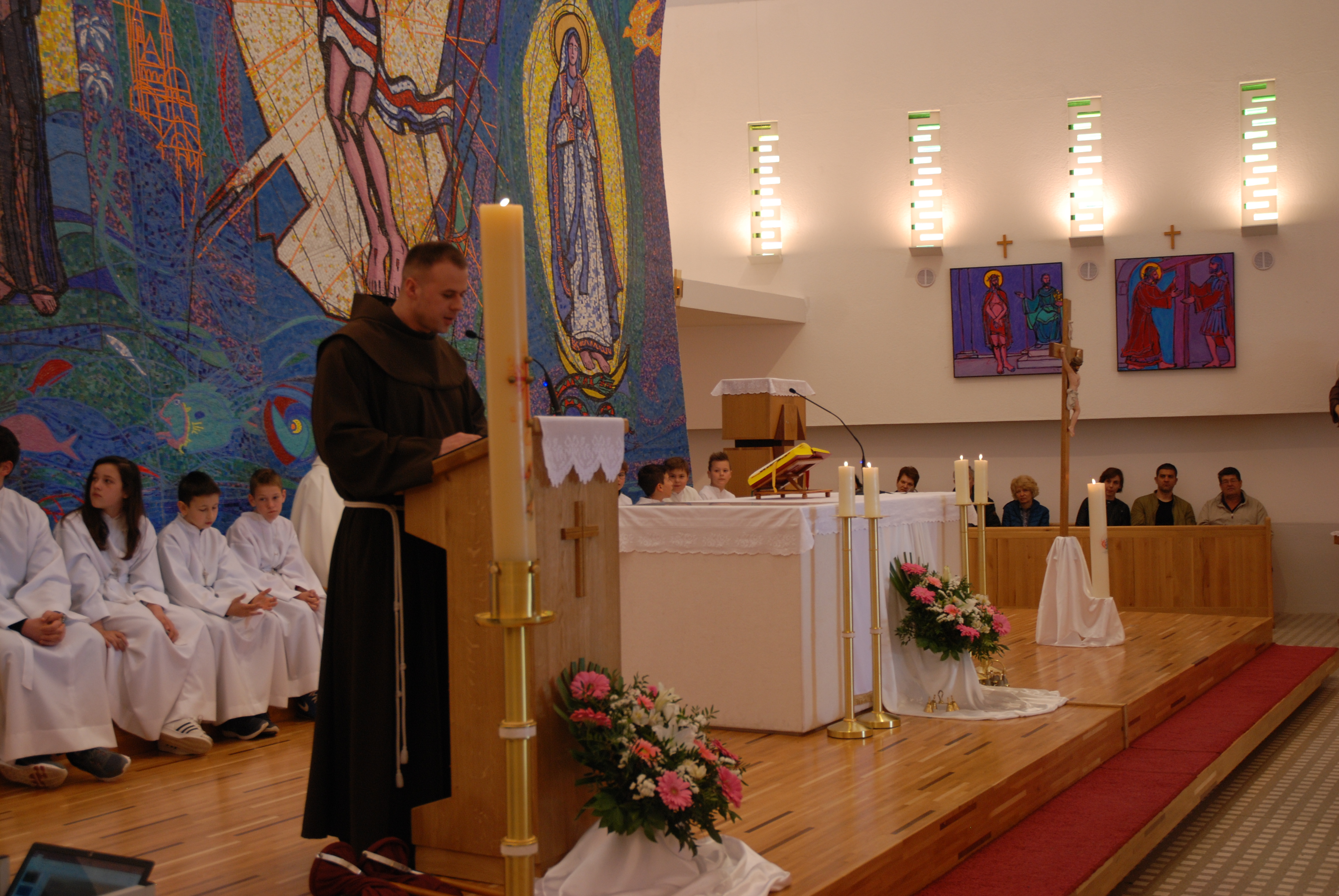 Uz župni zbor bogoslovi su glazbeno animirali misno slavlje, čitali riječ Božju i posluživali, zajedno sa đakonom fra Milanom Ignacijem Sladojom i ministrantima kod oltara. Nakon svete mise bogoslov fra Ivan Grubišić podijelio je sa župljanima njegovo svjedočanstvo puta do duhovnog poziva, a fra Nikola Dominis kratkom prezentacijom prikazao je život i rad bogoslova u klerikatu o. fra Ante Antića u Splitu. Nakon slavlja u crkvi župnik fra Mario je mlađu braću, zajedno sa starijom braćom iz samostana i okolnih župa, srdačno ugostio oko bratskog stola te mu od srca zahvaljujemo na srdačnom gostoprimstvu.