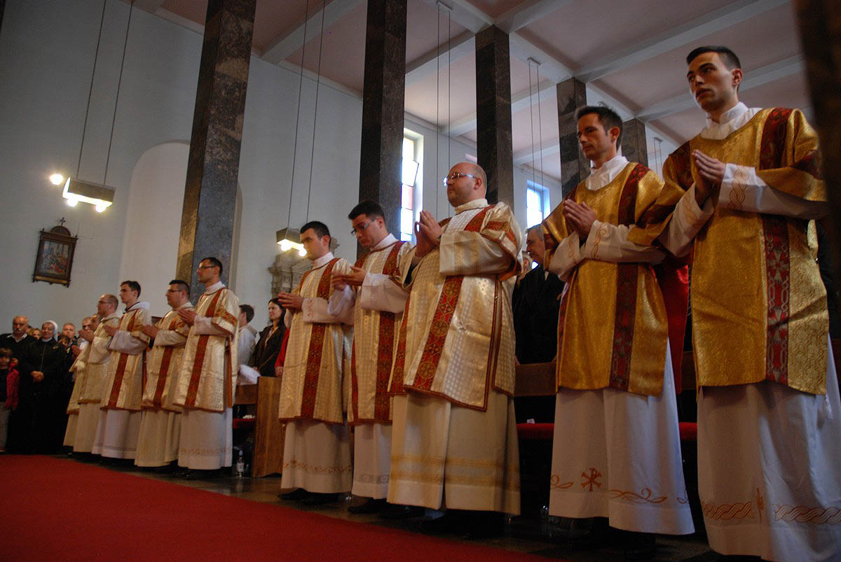 „Svetkovinom Krista Kralja svega stvorenoga završavamo liturgijsku godinu, a ona je na najljepši mogući način obogaćena vama dragi kandidati, i ovim đakonskim ređenjem. Krist želi biti kralj naših srdaca, a vi ste, dragi kandidati, to prepoznali“, kazao je nadbiskup na početku misnog slavlja te pozdravio braću svećenike, odgojitelje i profesore, župnike rodnih župa ređenika i župa gdjevrše đakonski praktikum, bogoslove, sjemeništarce i časne sestre, a posebno roditelje, obitelj i prijatelje ređenika, kao i sav vjernički puk.