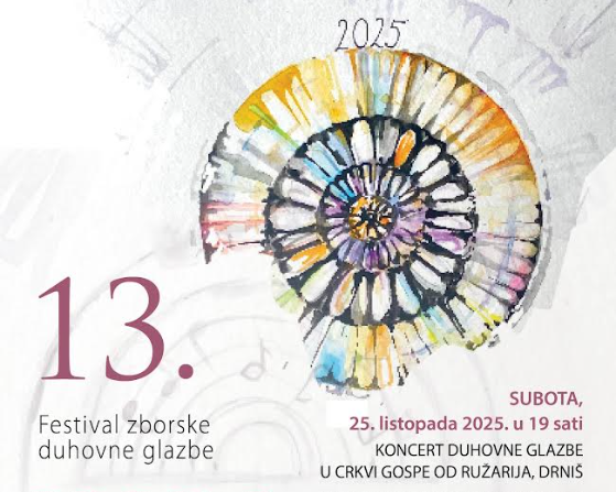 U nadolazeći vikend, 25. i 26. listopada 2025., u Drnišu i u Gradcu održava se 13. Festival zborske duhovne glazbe „Jubilate Deo“.