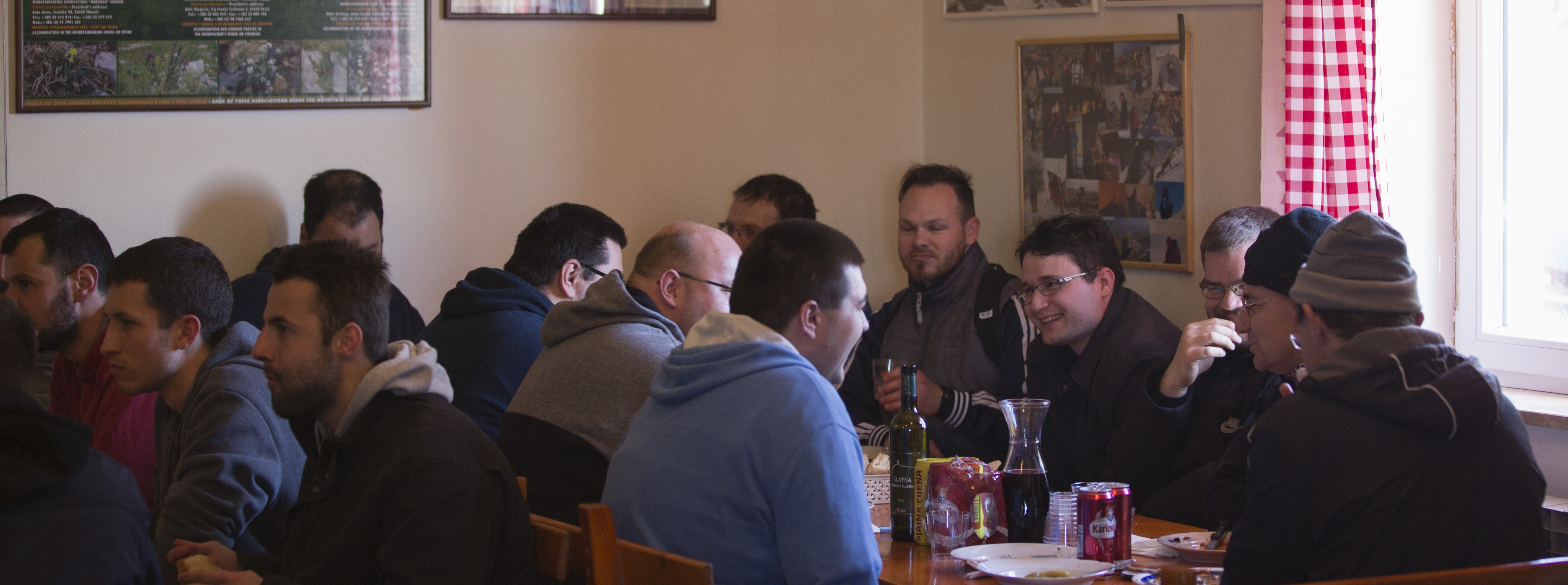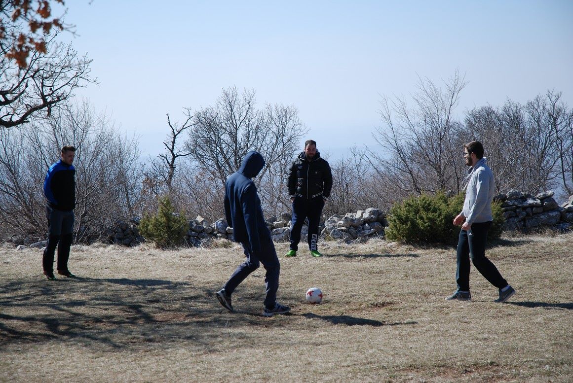 U dobrom društvu "pala" je i dobra pjesma uz gitaru, a oni raspoloženiji za sport pokušali su čak i igrati nogomet na burnoj planini. Bura kao nepristran igrač podjednako je uspješno "pomagala" objema ekipama. Osim nogometa zaigrala se i pokoja partija šaha i briškule, no ipak je dominirala pjesma u toplini planinarskog doma. Sa zalaskom sunca završio je i naš izlet te smo se puni dojmova vratili natrag u naš samostan.