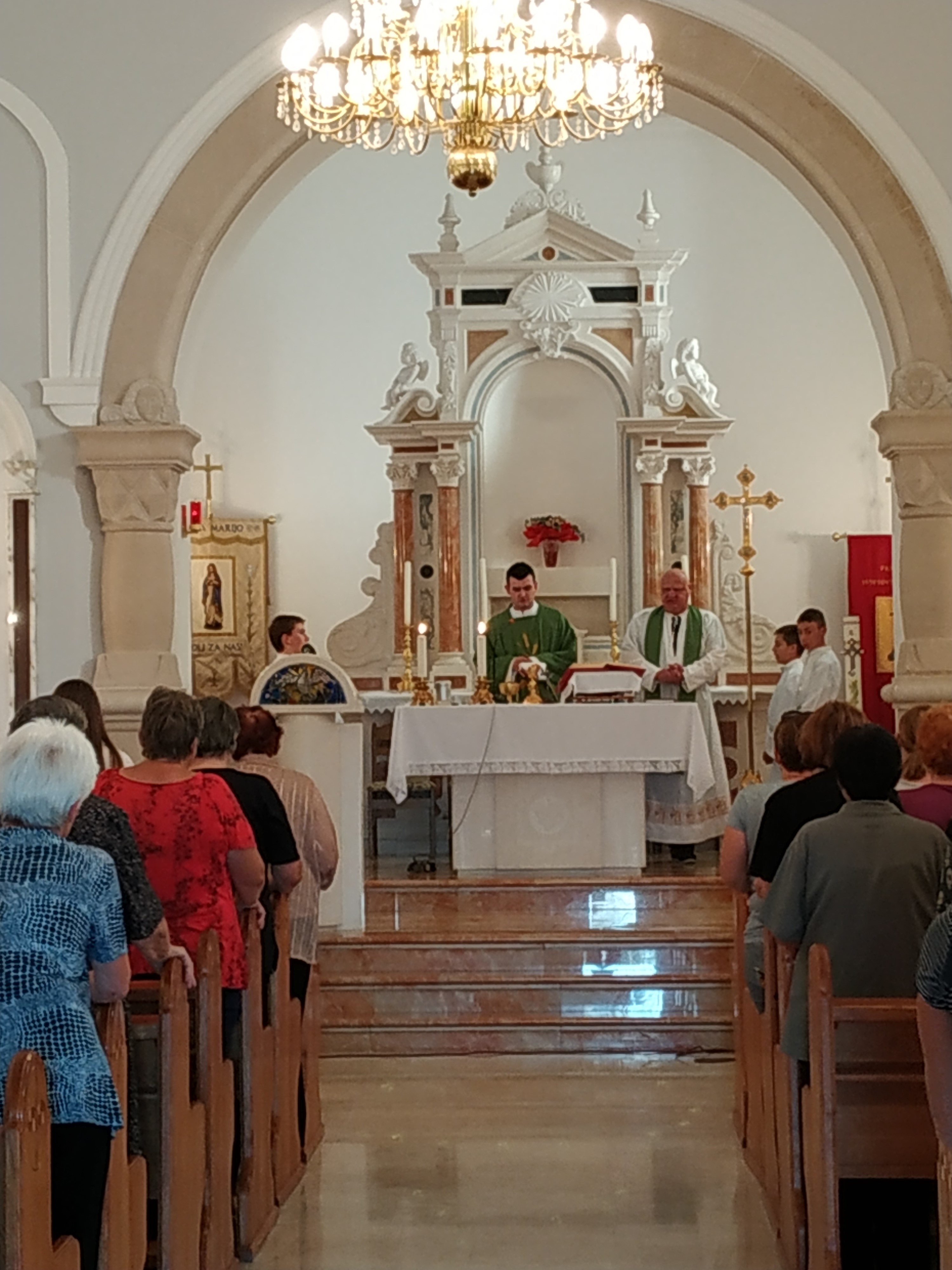 Večernju misu na sam blagdan Male Gospe predvodio je ekonom provincije Presvetog Otkupitelja fra Josip Gotovac, uz prisustvo velikog broja vjernika iz drugih župa, posebno članova različitih kulturno-umjetničkih društava pristiglih u posjet domaćoj Etnoudruzi Petrovo polje. Blagoslov djece, od kojih mnogi pjevanjem i ministriranjem aktivno sudjeluju u životu župe, za vjerovati je, pripomoći će da u svom životu ne skrenu s puta prema raznim zavodljivim stranama slatkorječivih samozvanih životnih učitelja, trenera, sekti, a daleko od jednostavne ljubavi Božje. O tome je fra Josip Gotovac govorio dva dana ranije na drugoj večeri trodnevnice kada je na misi pjevao Gradski pjevački zbor „Neuma“ iz Drniša, pod vodstvom prof. Jelene Prpa.